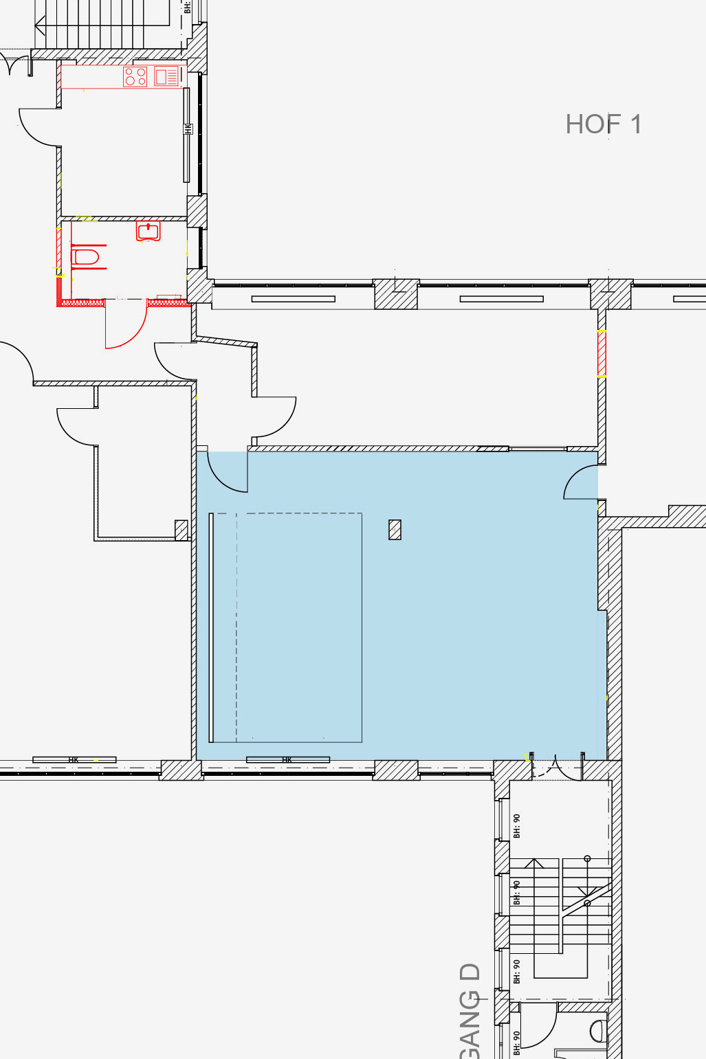 Achtung: Die Einheit wird in den nächsten Jahren noch einmal umgebaut und ein Teil der Grundfläche abgetrennt. Die zukünftige Grundfläche wird nach dem Umbau ca. 60 m² betragen.