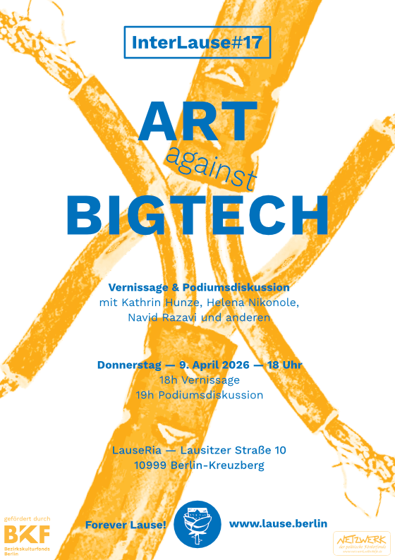Bei der InterLause#17 diskutieren wir mit den Künstler:innen Kathrin Hunze, Helena Nikonole, Navid Razavi, Conny es Said und anderen, was es bedeutet in Zeiten von Big Tech und ihren kommerz- und ideologiegetriebenen LLMs und Konsorten Tech-Kunst zu machen. Lassen sich Nischen finden, in denen sich die Künstler:innen noch frei bewegen können? Welche künstlerischen Mittel wenden sie an, um den Widerstand gegen Big Tech voran zutreiben? Oder werden letztlich doch alle zu Zuarbeiter:innen überdimensionierter KIs, die überteuerte Abos akzeptieren müssen?